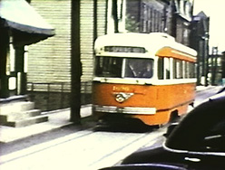These images, all frame captures from our master tape, take you on a condensed ride over Pittsburgh Railway's North Side lines. The images are arranged in the same order they appear in the tape. Click on each image if you want to see a larger version of that image (about 20-35KB each). If you would like to see all the images on one page, larger and with captions, click here (2.1MB).
